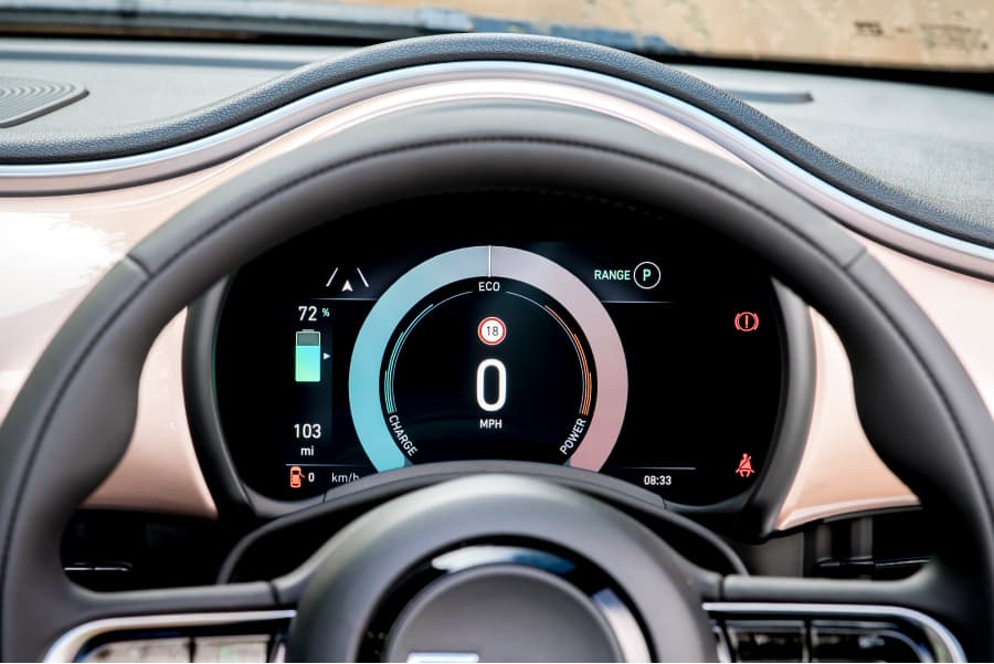 The Fiat 500e is one of the first electric cars to offer one-pedal driving, meaning that the right-hand pedal is used for both accelerating and decelerating. When the driver lifts their foot from the pedal, the car automatically slows down, which generates electric power to help recharge the battery.